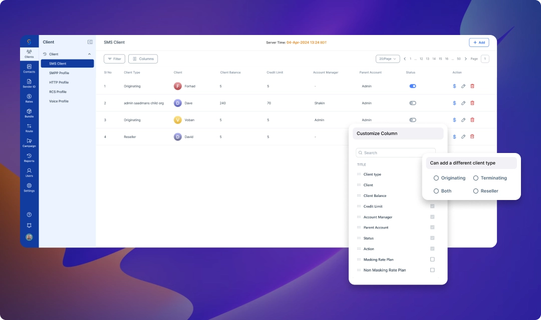 Take full control and manage dynamic and generic SMS campaigns with an intuitive web-based interface that enables users to schedule campaigns, customize sender IDs with virtual numbers, and manage everything effortlessly