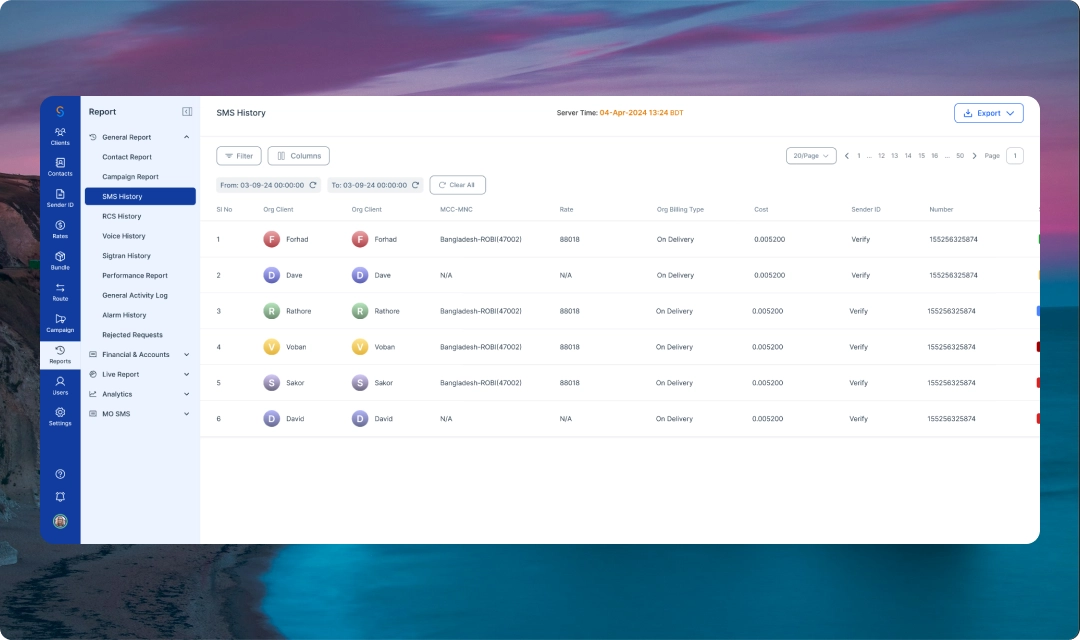 Detailed SMS reports, advanced alert management, and financial analysis provide valuable insights to refine campaign strategies. You can also track user activities and monitor live traffic for effective campaign oversight.