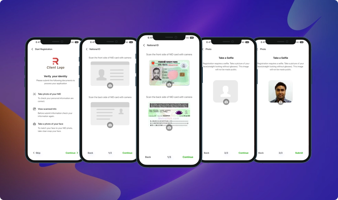 Advanced Auto KYC streamlines the sign-up process like never before. Users simply upload a copy of their passport or government-issued ID and take a selfie. The app automatically retrieves the necessary details from the government database and prompts the user for confirmation.