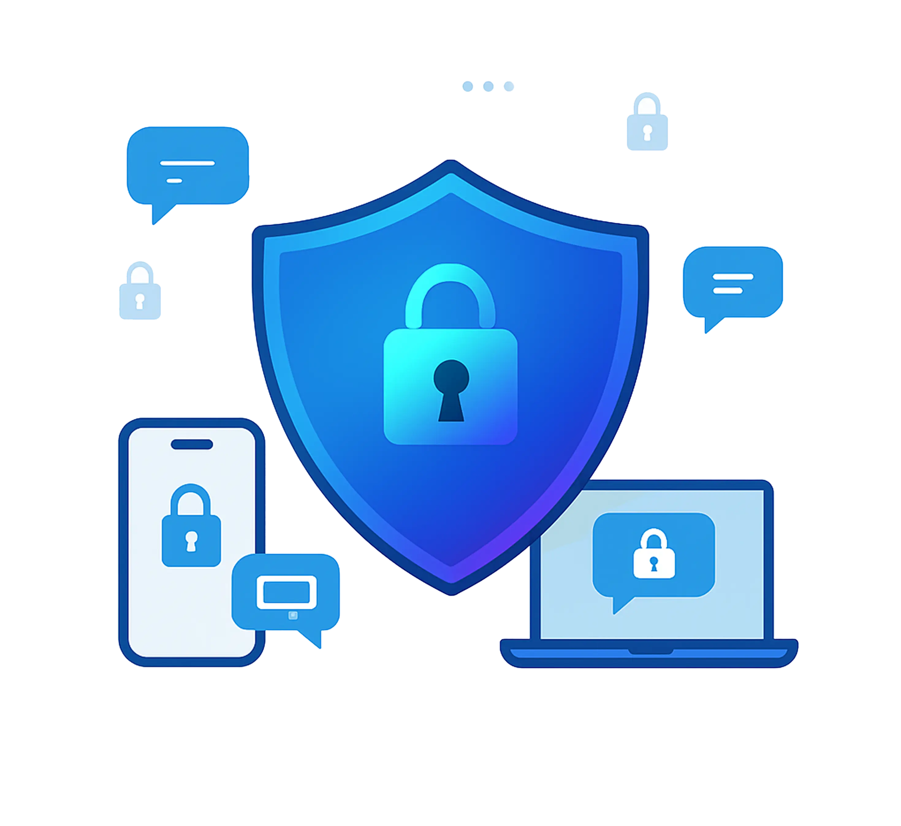 Business and personal communication through the REVE Voice, Video & Messaging App is highly secured with multi-level encryption, access control, and secret chat capabilities.